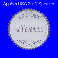 Achievement for having spoken at the OWASP AppSecUSA 2012 conference in Austin, TX.